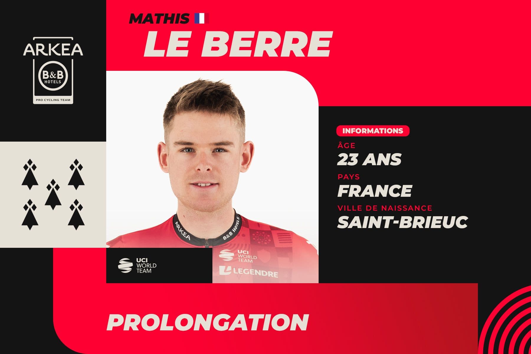 Breton rider Mathis Le Berre has extended his contract with the ARKEA-B&B HOTELS UCI Wolrd Tour team, managed by Emmanuel Hubert.