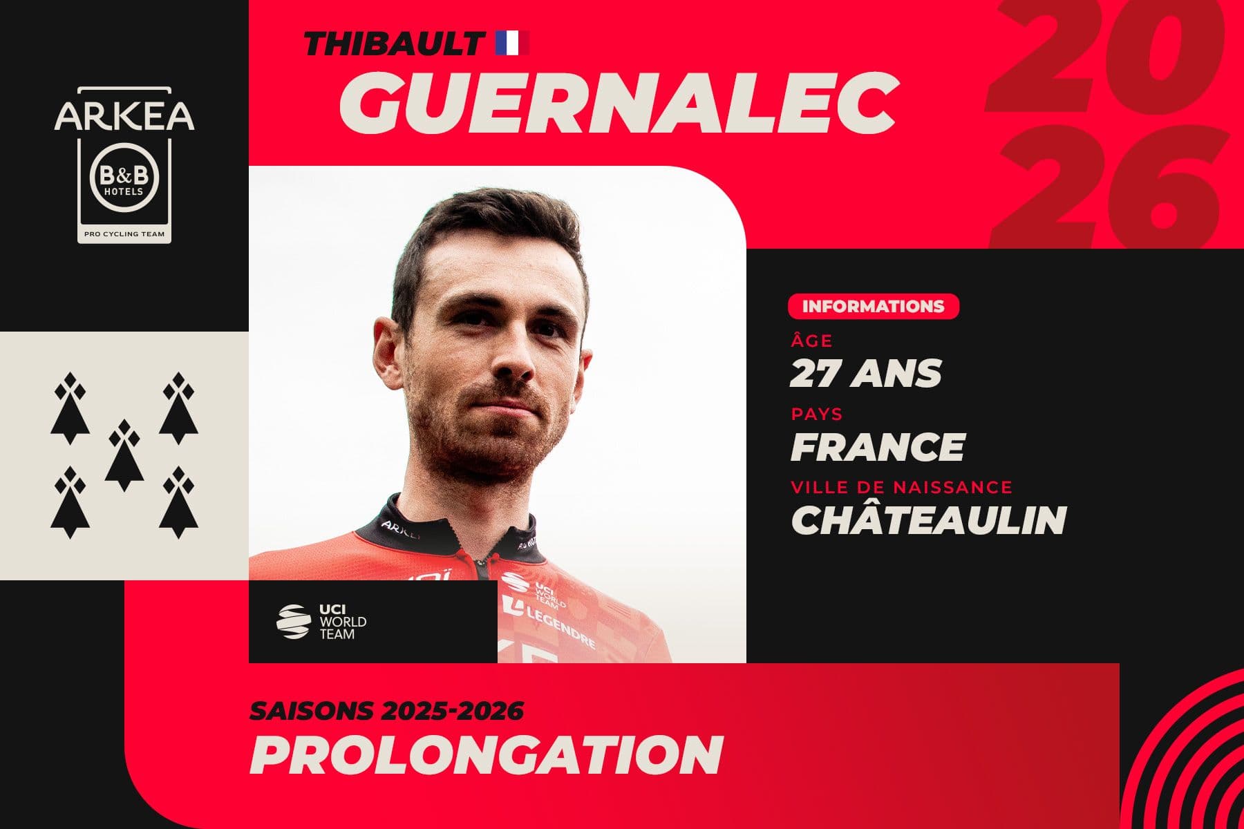 Thibault Guernalec, the Breton rider who finished third in this year's French Time Trial Championships, has extended his contract with the ARKEA-B&B HOTELS team for a further two seasons.