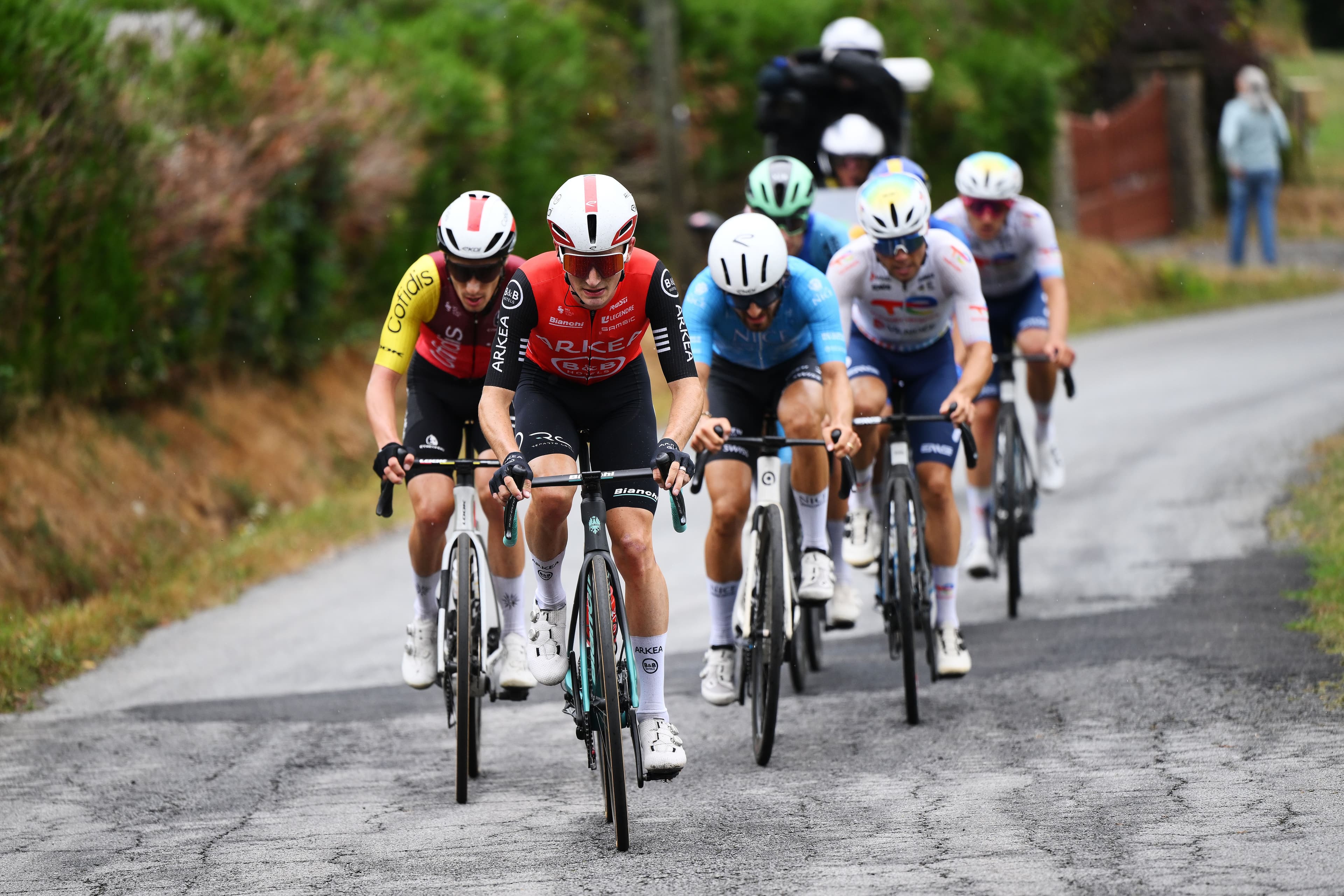 Ewen Costiou 2nd at La Courtine, Simon Guglielmi ahead and taking bonus points, a good start to the Tour du Limousin for the red and black team in their “Excalibur” jerseys.