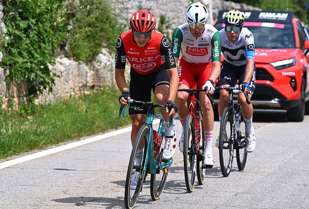 Taking part in his first Grand Tour, Giosue Epis spent stage 5 of his national tour at the front, heading for Matera.