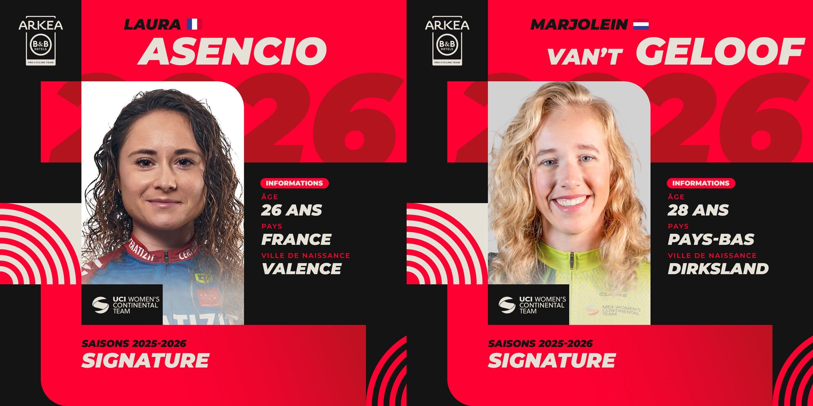 The Valentinoise and the Dutchwoman, who have both won or taken part in the Women's World Tour, will join the ARKEA-B&B HOTELS Women's squad from 1 January 2025.