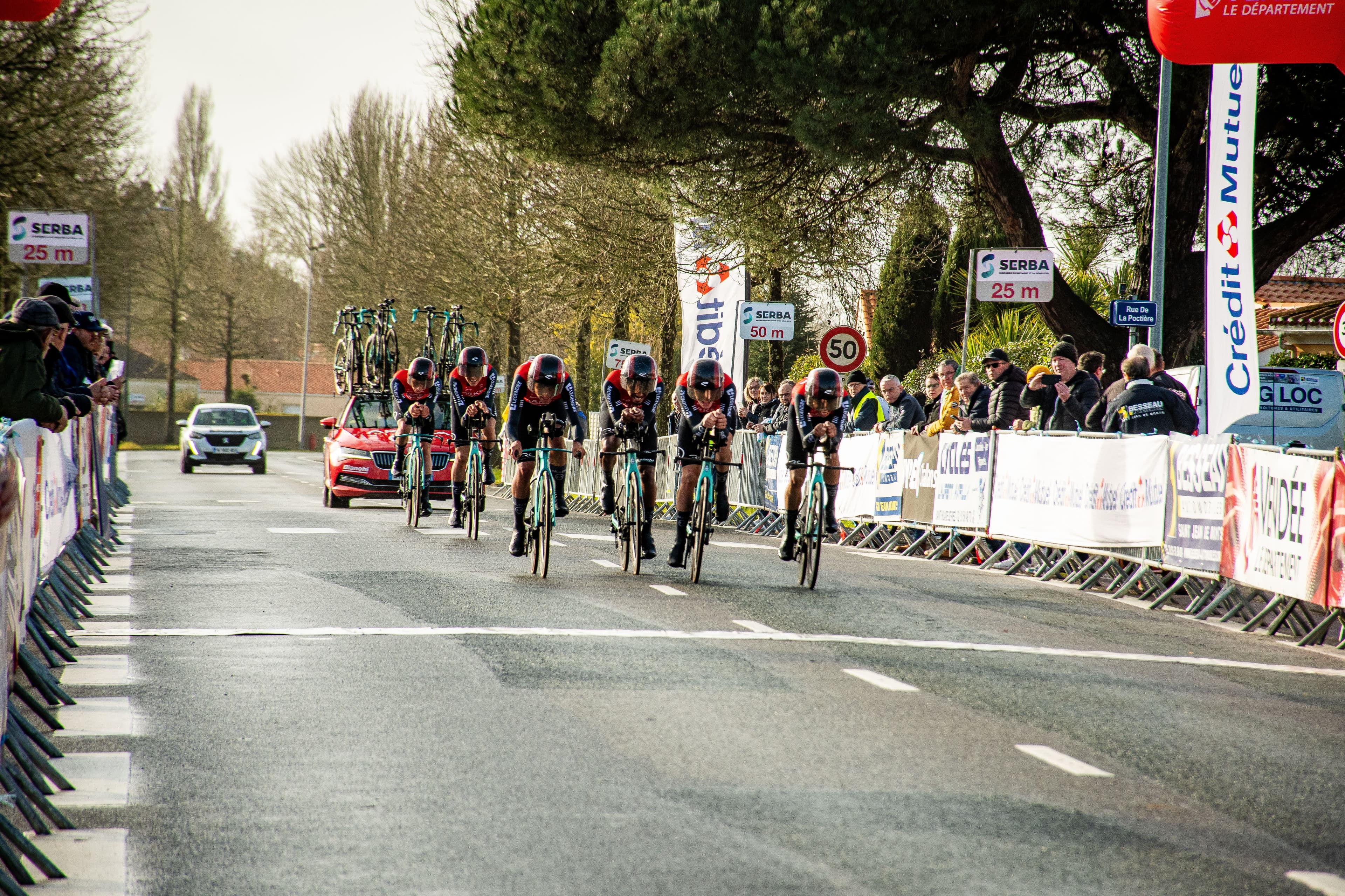 Axel Bouquet, Baptiste Gillet, Swann Gloux, Emmanuel Houcou, Nicolas Milesi, Baptiste Poulard and Paul Thierry won the team time trial at the Circuit des Plages Vendéennes in Challans on Saturday, 2 days after Emmanuel Houcou's sprint victory.