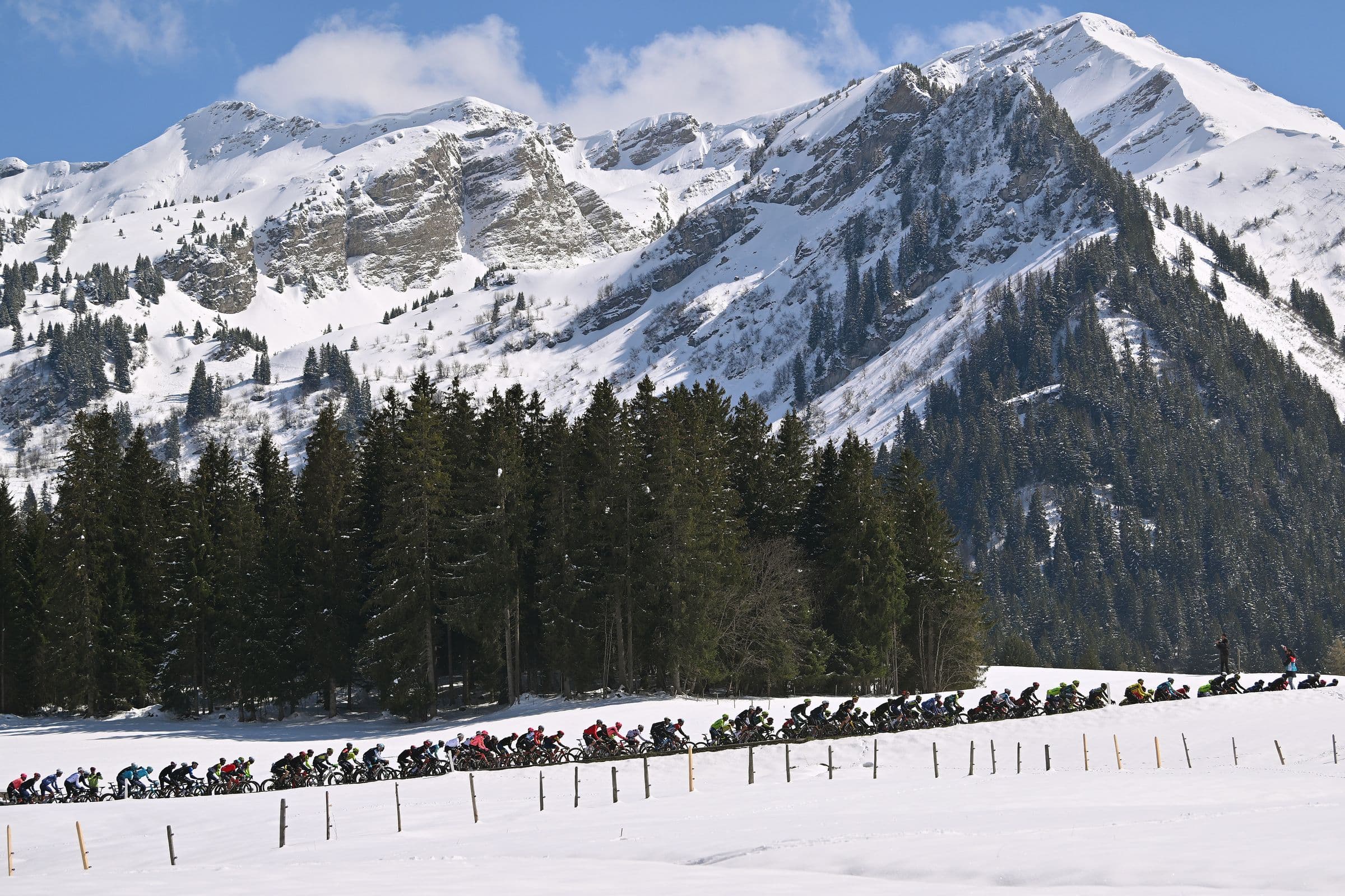 L'arrivée de la deuxième étape du Tour de Romandie était jugée au cœur de la station de ski Les Marecottes. Cristían Rodríguez, termine 12e.