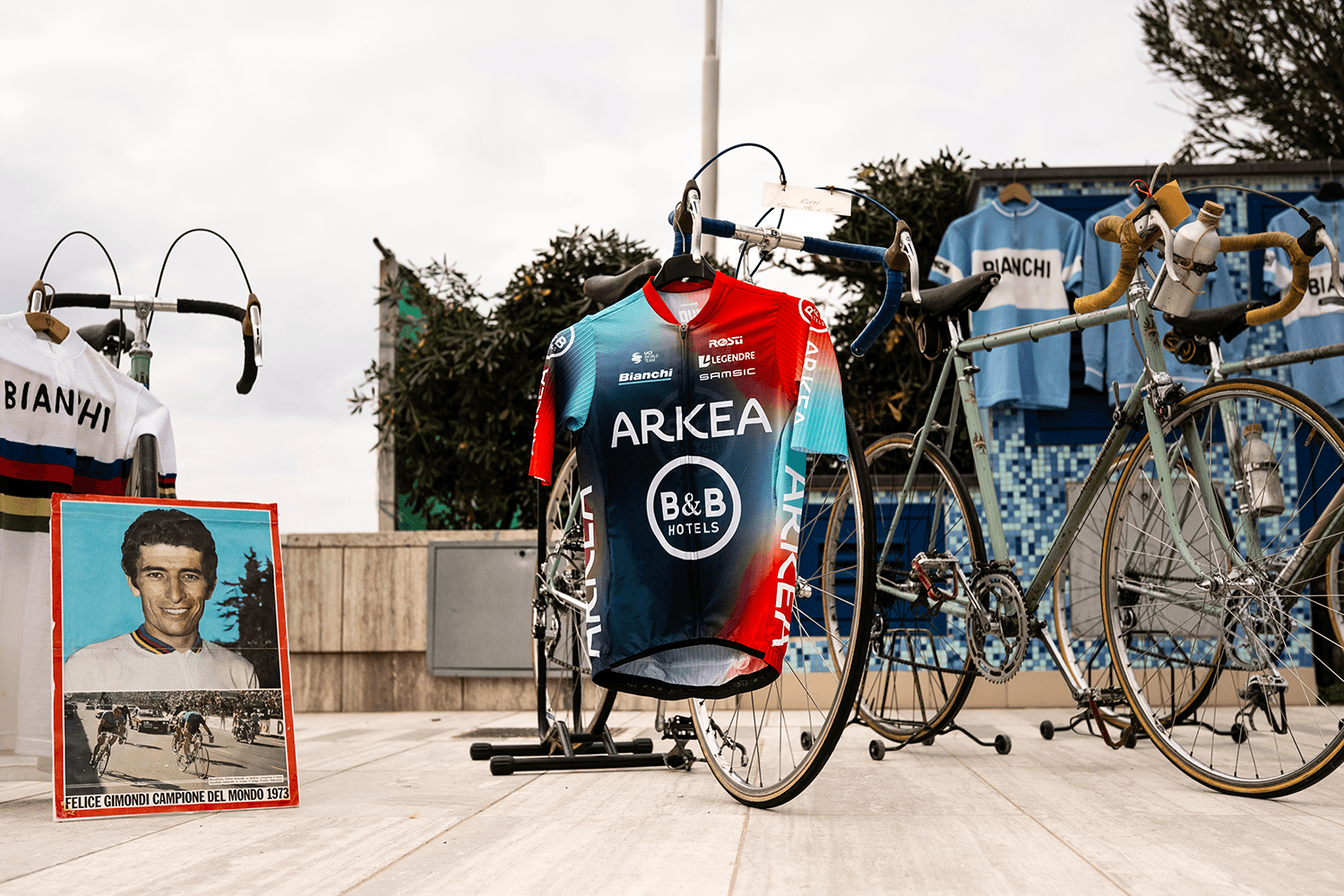 À l’occasion de l’édition 2025 de Milan-San-Remo, l’équipe ARKEA-B&B HOTELS portera un maillot collector mêlant les couleurs rouge-noir identifiant nos partenaires titres ARKEA et B&B HOTELS et la couleur "céleste", célébrant les 140 ans de la marque Bianchi, fournisseur cycles qui équipe la formation Bretonne, managée par Emmanuel Hubert. Maillot collector qui est le fruit de la collaboration entre nos partenaires.