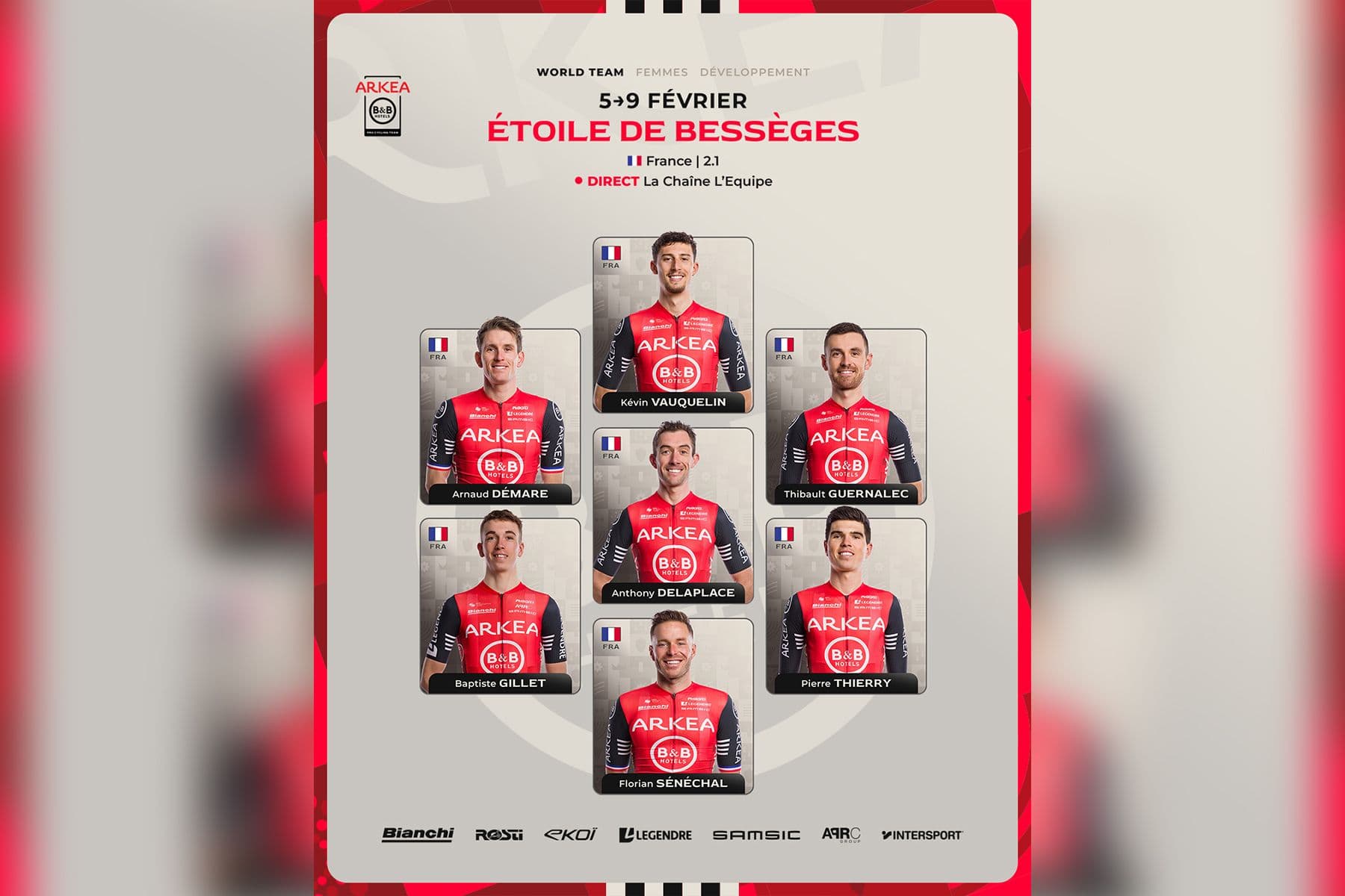 Arnaud Démare, pour les sprints, et Kévin Vauquelin pour les étapes difficiles, le contre-la-montre et le classement général, seront les deux leaders de l’équipe ARKEA-B&B HOTELS sur les routes de l’Étoile de Bessèges 2025.